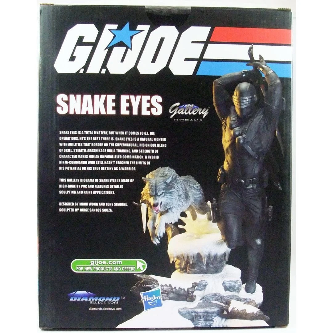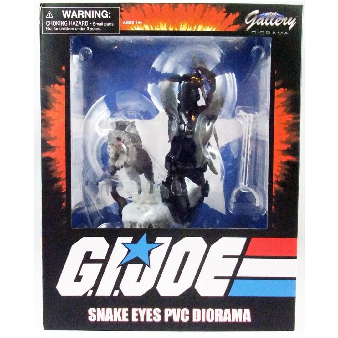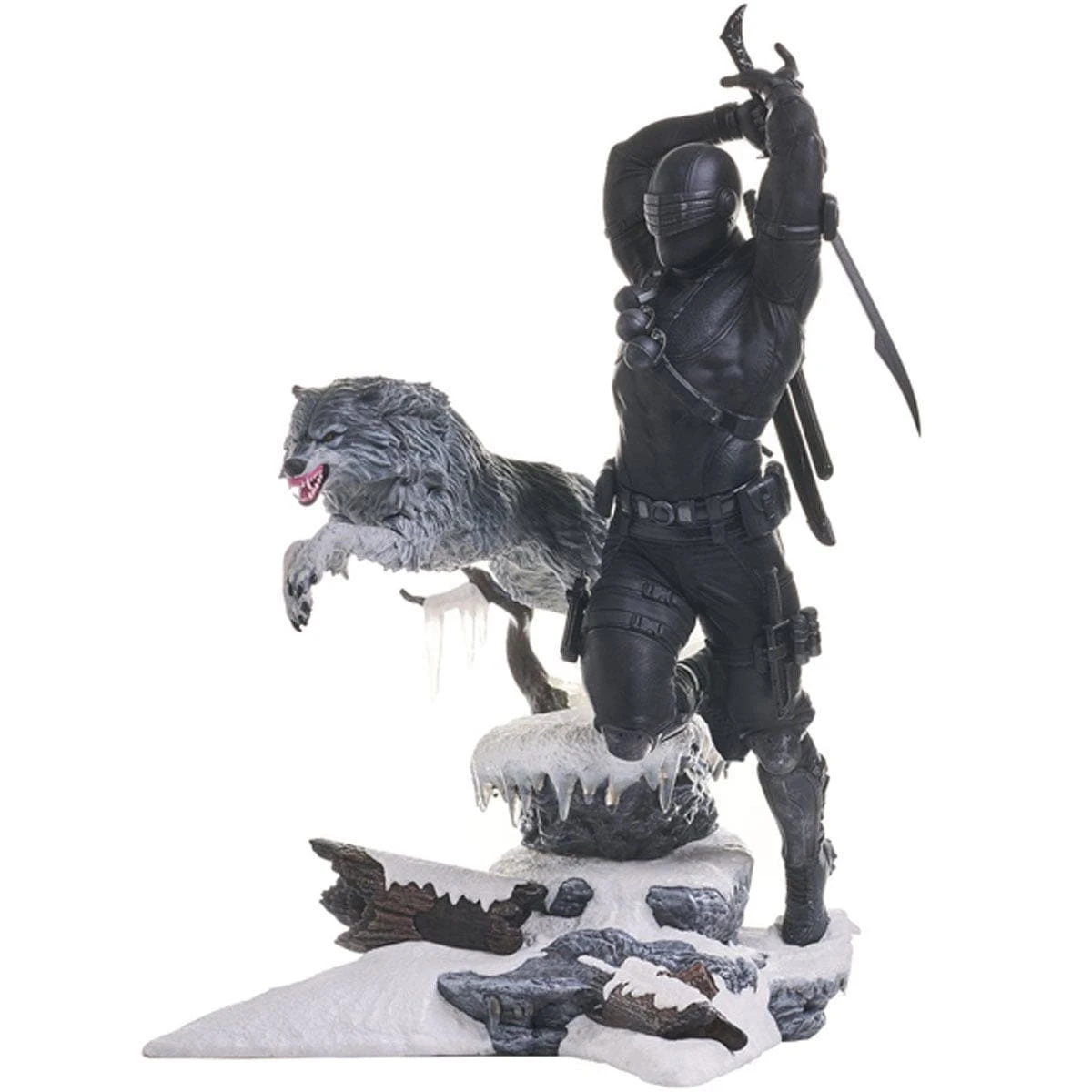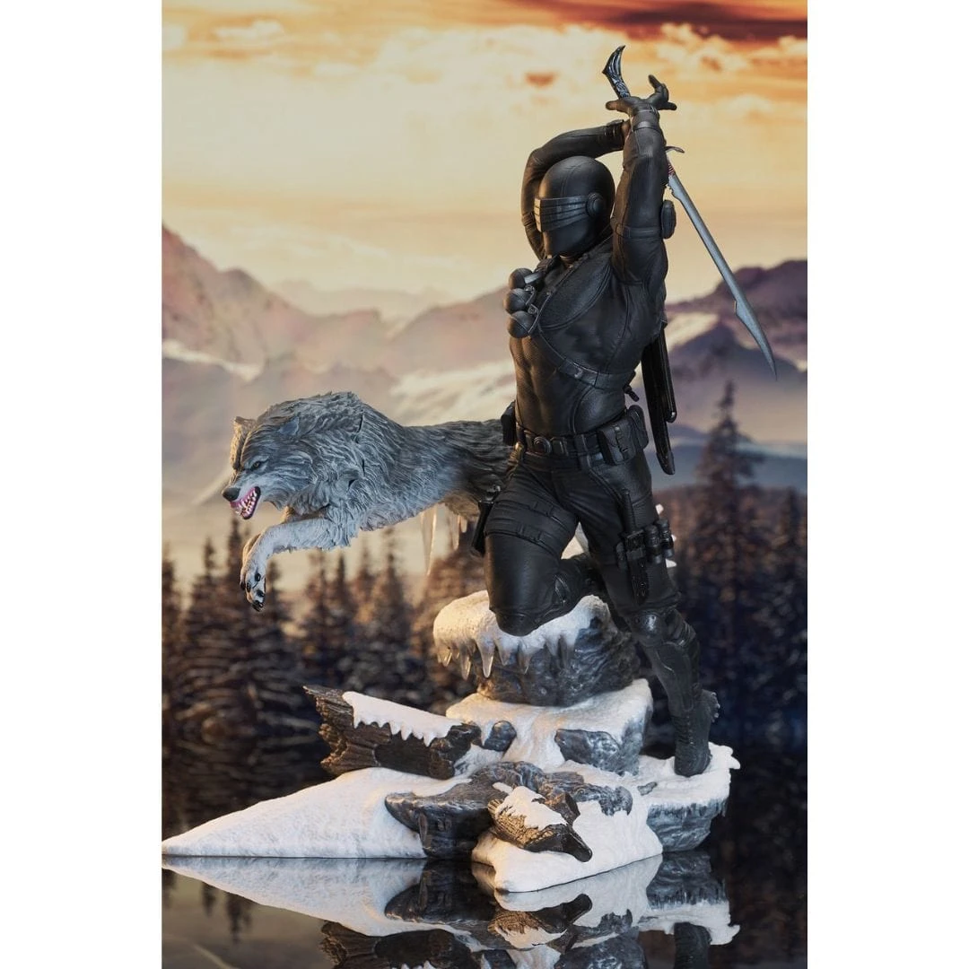 G.I. Joe’s silent ninja, Snake Eyes, leaps from a snowy ledge in this all-new PVC diorama from Diamond Select Toys! Flanked by his wolf companion Timber, Snake Eyes wields his trademark sword as he launches his sneak attack. Measuring approximately 11″ tall, this diorama features detailed sculpting and paint applications, and comes packaged in a full-color window box.