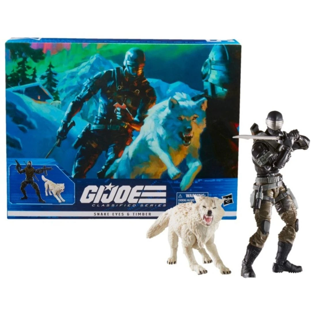 The Snake Eyes & Timber figures come ready for action, with multiple points of articulation for high poseability and 12 character-inspired accessories including an array of weapons, alternate hands, and a fangs-bared alternate head for Timber; plus a footlocker to stow all their gear! And with custom artwork by Greg Manchess, the G.I. Joe Classified Series Snake Eyes & Timber package will make a mark on shelves.