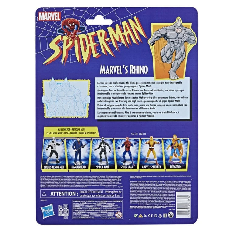 The Rhino is highly articulated, with extensive articulation that offers dynamic posability with other Marvel Legends figures. The figure also comes with a retro-style cardback inspired by the classic Marvel Toy Biz designs, making it the perfect addition to any collection.