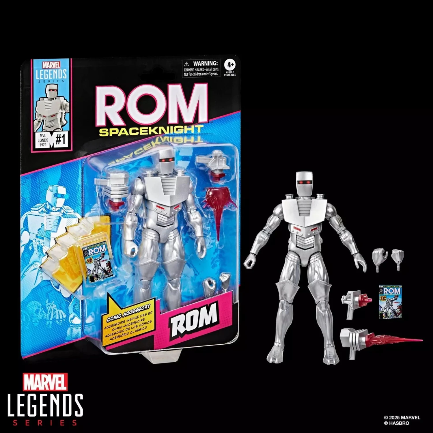 Detailed to look like the character’s appearance in Marvel’s Rom: Spaceknight #1 (1979), this collectible 6-inch scale Marvel figure is fully articulated with premium design and poseable head, arms, and legs. This Marvel action figure set comes with 6 accessories, including blast effect, alternate hands, Analyzer to reveal shape-shifting Dire Wraiths, and Neutralizer to banish them into Limbo, as well as a 6-inch scale plastic comic book accessory featuring the cover of Rom: Spaceknight #1 (1979).