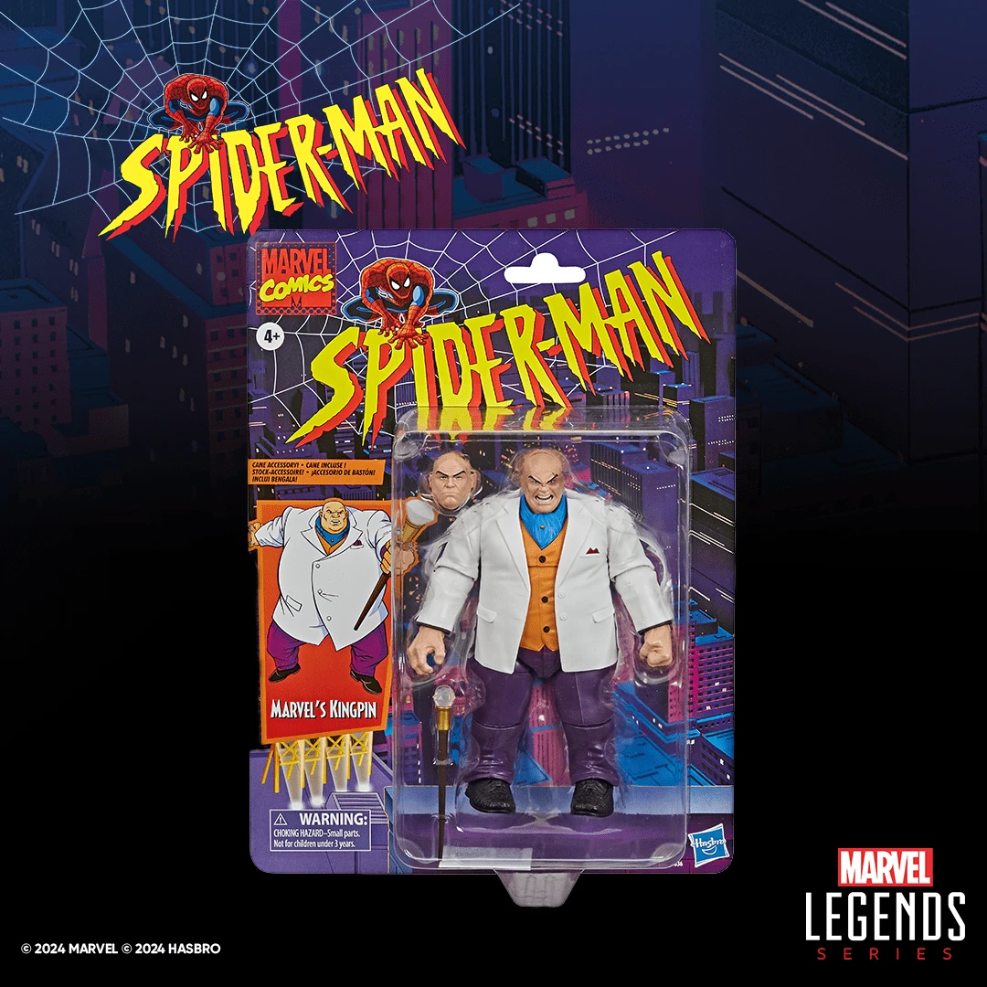 A tribute to the history of Marvel Super Heroes, the Marvel Retro 6-inch Collection features core Marvel characters with retro packaging and design. Each figure includes multiple points of articulation, classic-inspired details, and character-specific accessories. Collectors and kids alike can expand their Marvel collection with the Spider-Man Marvel Legends Retro Kingpin action figure!