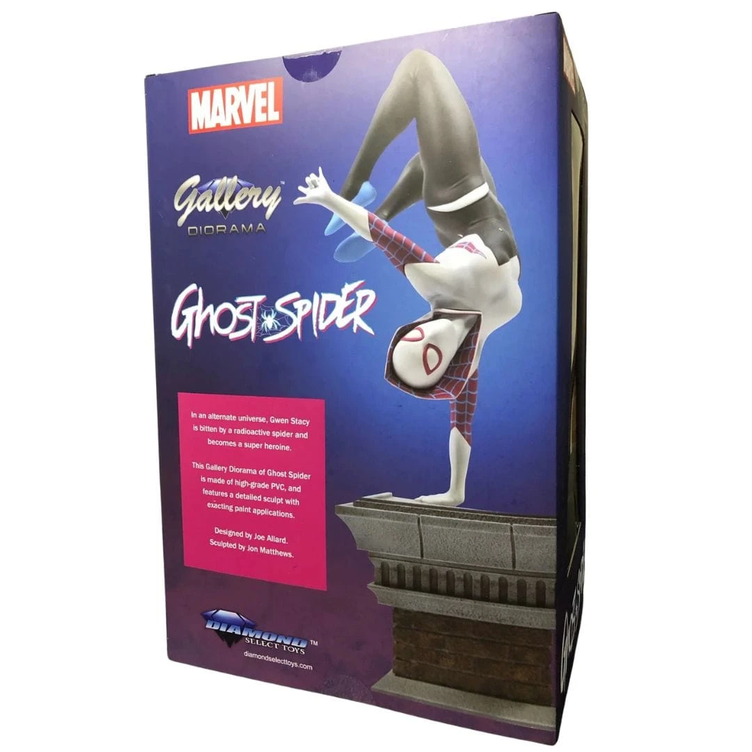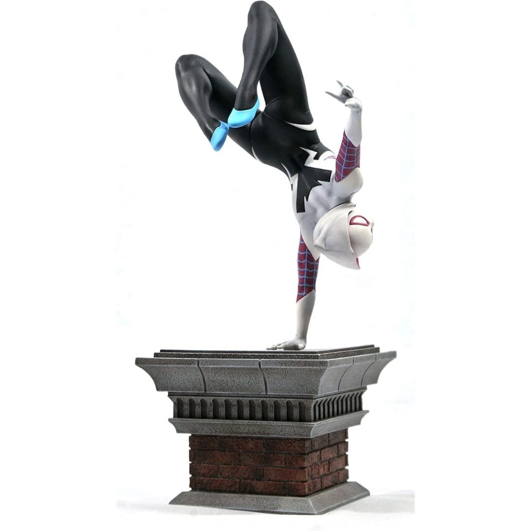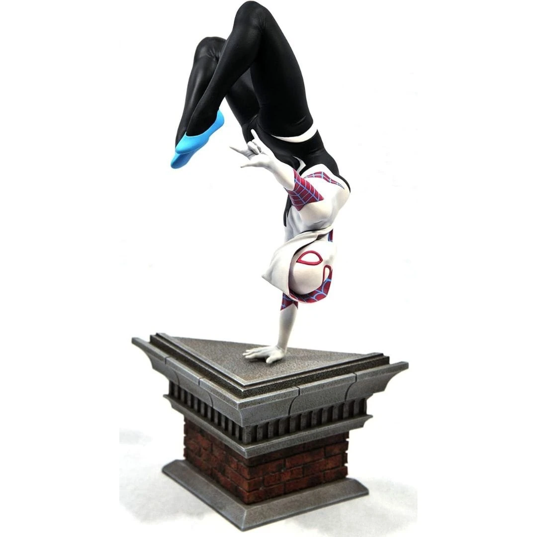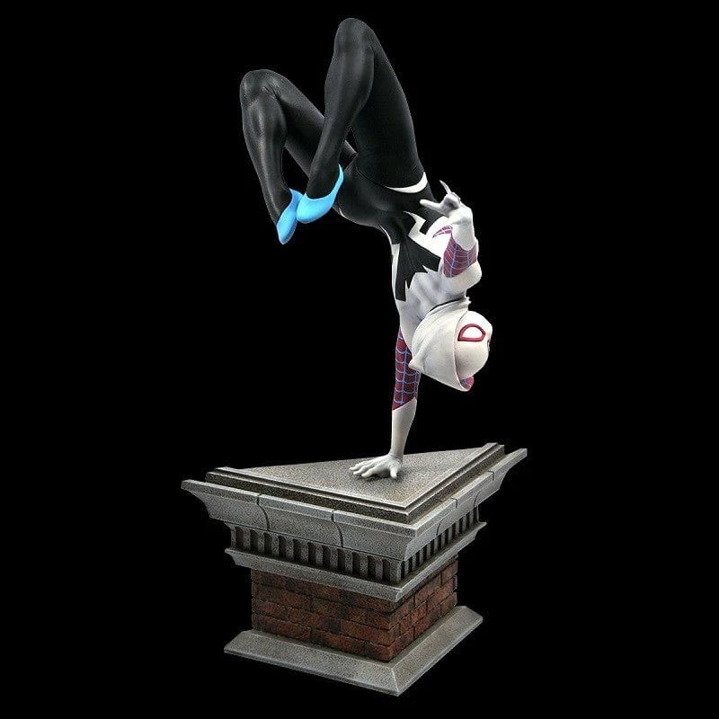 Captured mid-handstand on a city rooftop base, the web-slinger formerly known as Spider-Gwen leaps back into the Marvel Gallery line with an all-new sculpt! Measuring approximately 11 inches tall, this dynamic sculpture is cast in high-quality PVC and features detailed sculpting and paint applications. It comes packaged in a full-color window box.Â