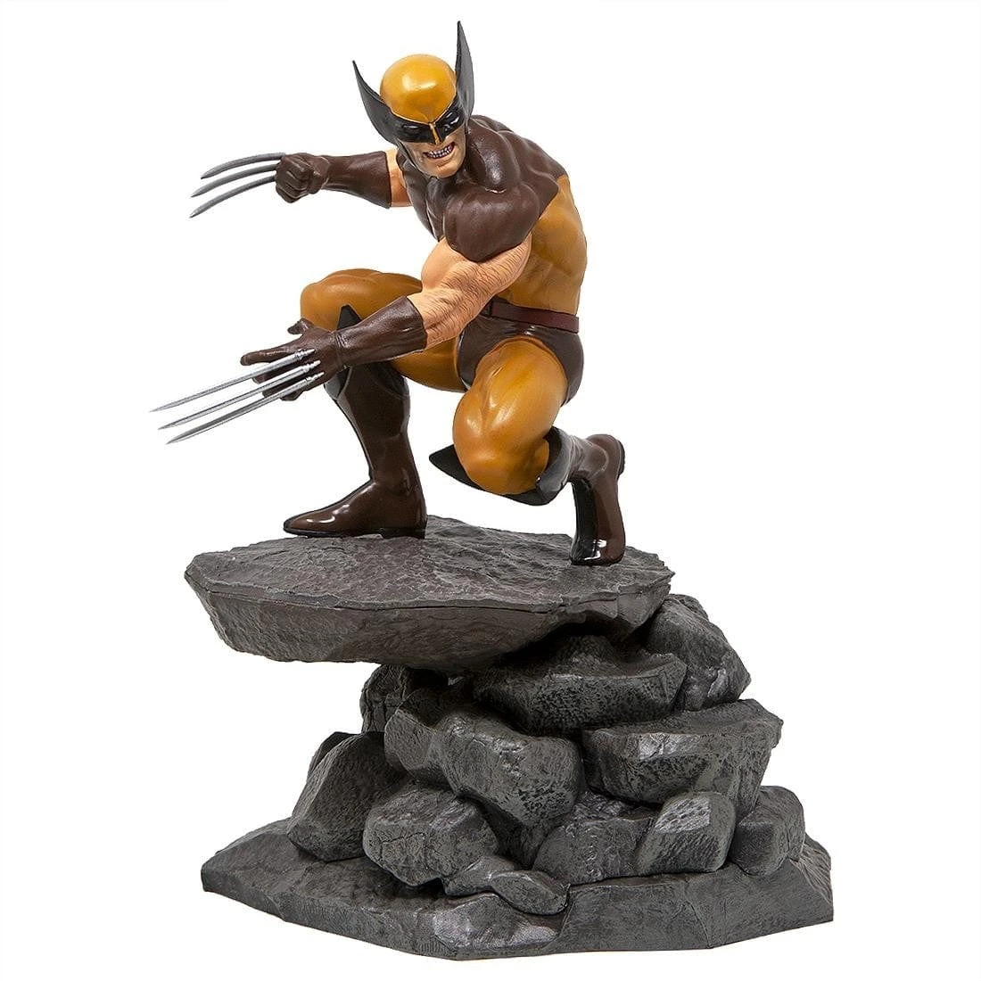 The X-Men’s resident berserker joins the Marvel Gallery line of PVC dioramas! This 9-inch scale sculpture of Wolverine shows the hero in his classic brown costume, perched on a rock formation with claws extended, ready to tear into an opponent. Featuring detailed sculpting and collectible-quality paint applications, this sculpture comes packaged in a full-color window box.
