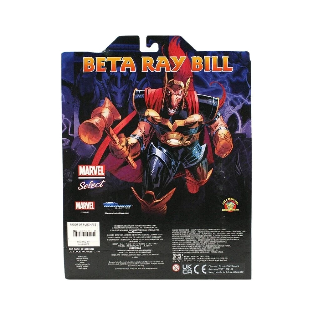 A Diamond Select Toys release! It’s an all-new Marvel Select action figure and it’s a big one! Beta Ray Bill has arrived, with his hammer Stormbreaker! Standing approximately 8.5 inches tall with crest, Bill wears his outfit from his 2021 mini-series, and includes his hammer and a spinning version of the same hammer. Featuring 16 points of articulation and detailed paint applications, it comes in display-ready Select figure packaging.