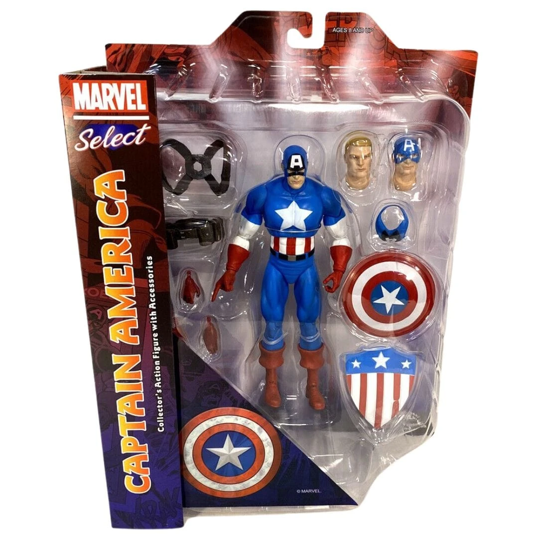 Atten-shun! Diamond Select Toys is making Captain America great with a great new action figure of the First Avenger! Based on classic Captain America artwork of the 1980s and 1990s, this 1:10 scale, approximately 7-inch-tall action figure features 16 points of articulation as well as multiple interchangeable parts and accessories, including heads, hands, shields and more! This figure comes in display-ready Select packaging, with side-panel artwork for shelf reference and was designed by Eamon O’Donoghue.