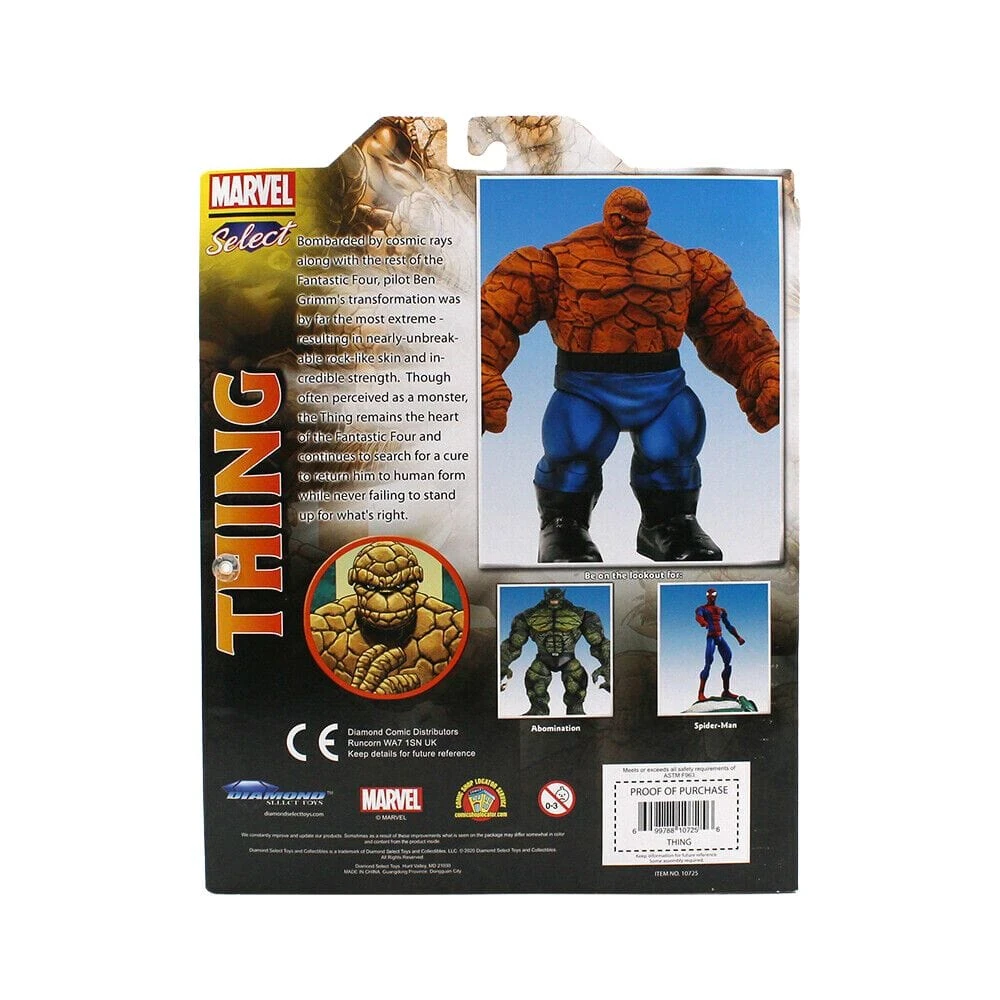 It’s clobberin’ time! The Thing returns to the Marvel Select line, in one of the most hotly demanded re-releases the line has seen! At over 8 inches tall, this massive action figure has 14 points of articulation and features detailed sculpting and paint applications. It comes packaged in display-ready Select packaging, with side-panel artwork for shelf reference.