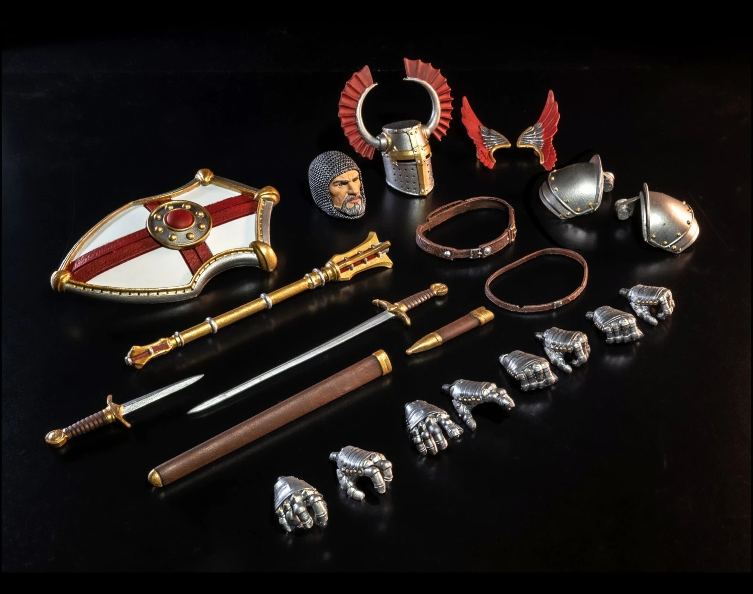 - Accessories:Â Templar sword and shealth, dagger and scabbard, Templar mace, Templar shield, 4 sets of hands