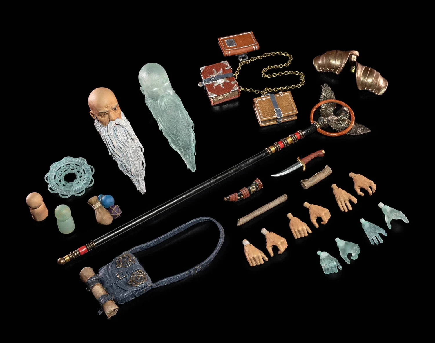 - Accessories: 3 spellbooks, 2 scrolls, magic staff, dagger and sheath, pouches, satchel, magic effect