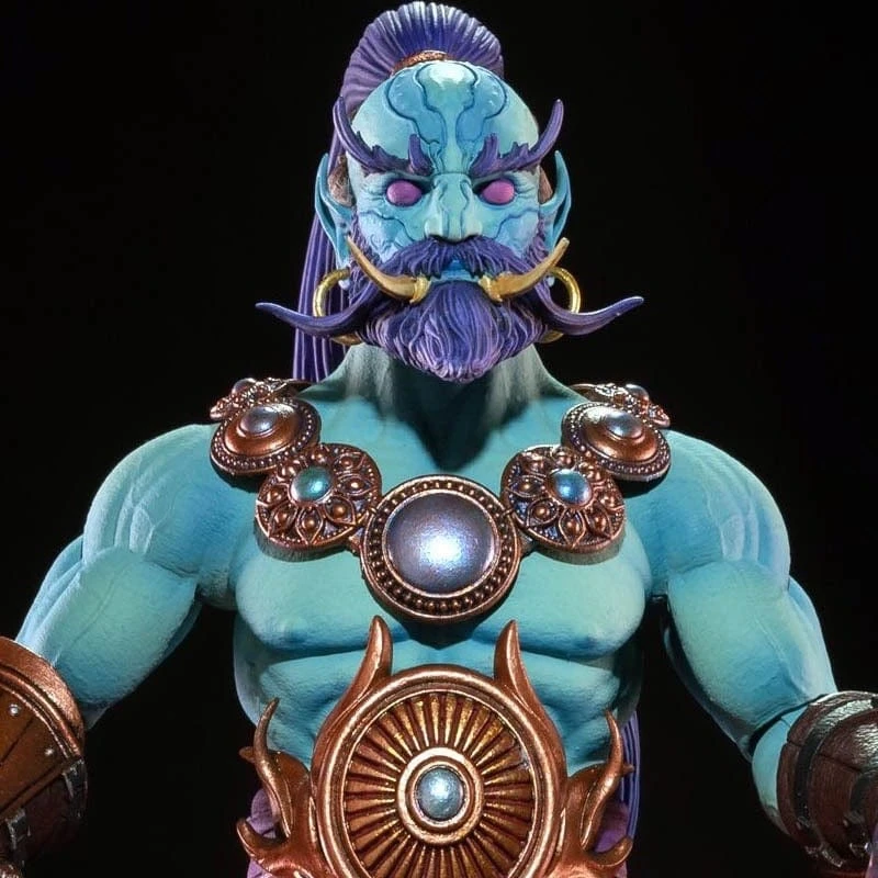 Born of an elemental fire that transcends our physical plane, the Djinn of Mythoss are an enigmatic people known for their great power and unpredictable allegiances. Considered spirits by some and demons by others, they are mighty beings who draw their abilities from the elements. Typically bound to inanimate objects by wizards and spellcasters seeking to tame their unruly strength, Djinn are both all powerful and prisoners of their own existence. The malevolent Kalizirr is a rare Djinn who has been freed from his bondage. Bent on revenge on the magic wielder that imprisoned him, Kalizirr is faithful to the cause of Poxxus and his war on honorable magic.
