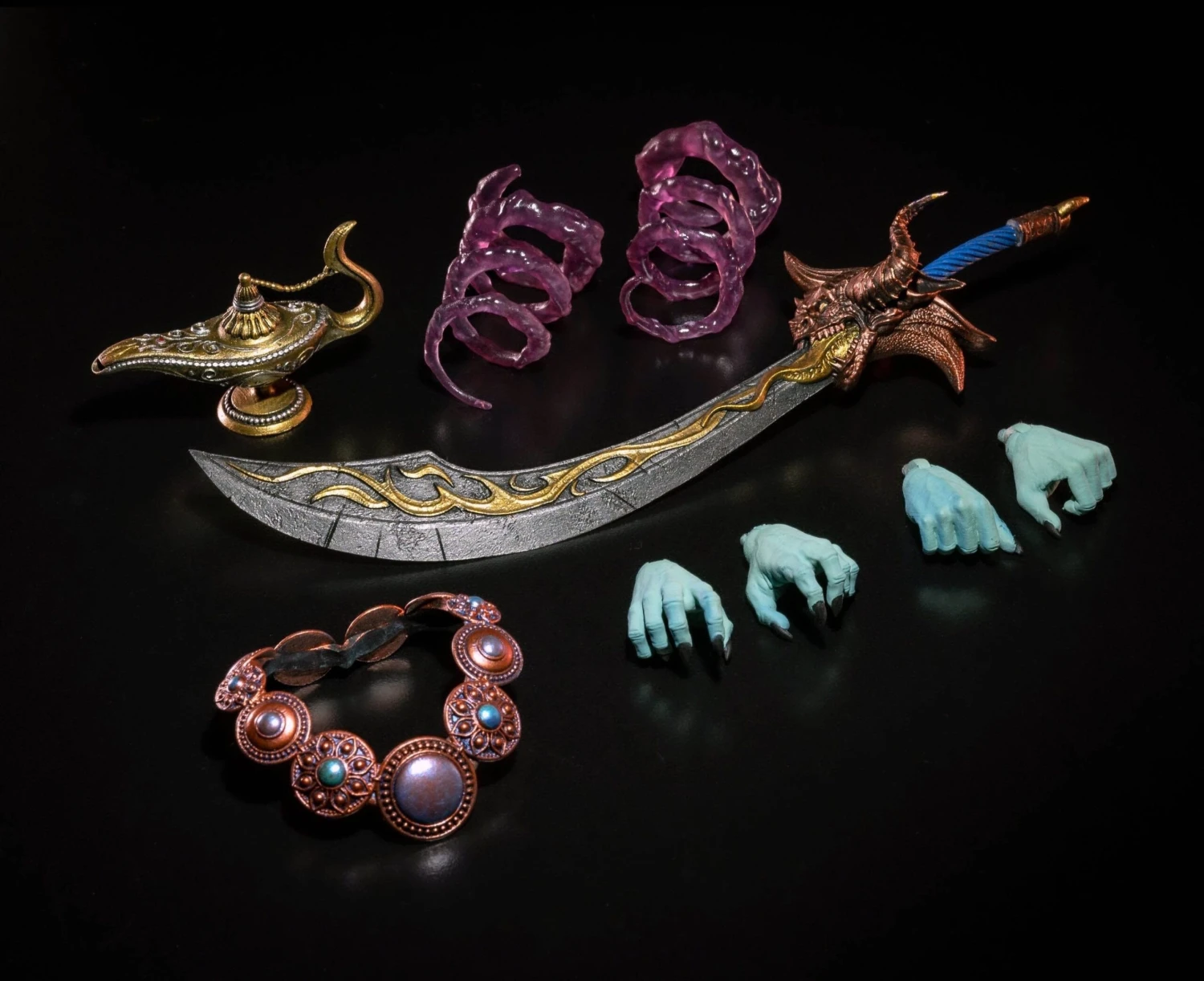 - Accessories:Â Magic lamp, large scimitar sword, magic effects, necklace, 2 sets of hands