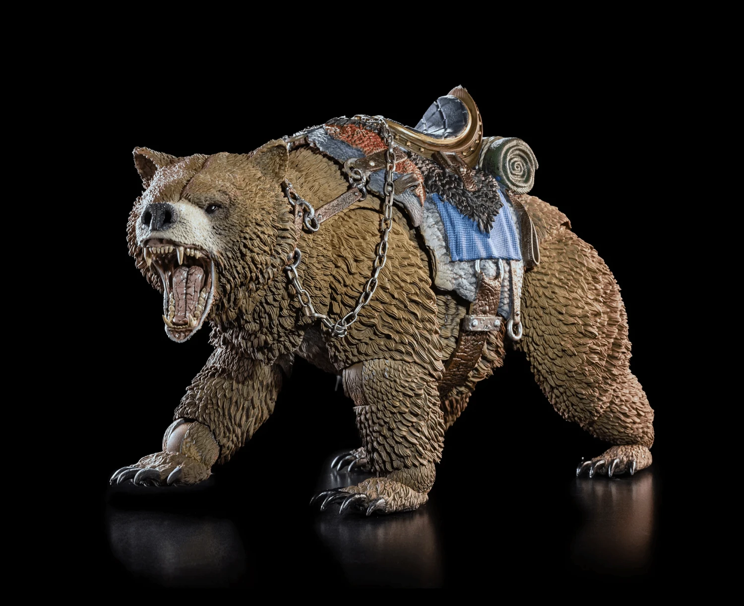 In the days before the House of the Noble Bear marched from the colds of Bjorngar towards inevitable war, Attlus the Conqueror returned to the home he once shared with his wife, Risha. Making his way to the tree under which he had buried her body, the tree whose desecration by orc raiders led to Attlus picking up his blades once again, the barbarian was greeted with an unexpected sight. A gigantic bear sat by the charred remains of the tree, its head bowed and eyes closed as if in silent prayer. Wary of alarming the bear, Attlus backed away quietly, but the bear opened his eyes and looked his way. Attlus felt his breath leave his body. He saw his wife’s eyes reflected in the gaze of that beast, and the barbarian king knew that somehow, his wife had sent this creature to his side in his most desperate hour. Together, man and beast left Risha’s Grove, as Attlus the Conqueror rode Bödvar towards the greatest battle the Realm of Mythoss had ever seen.