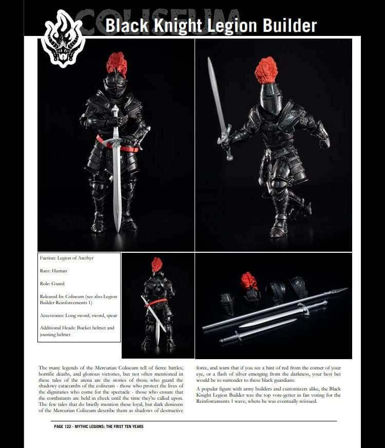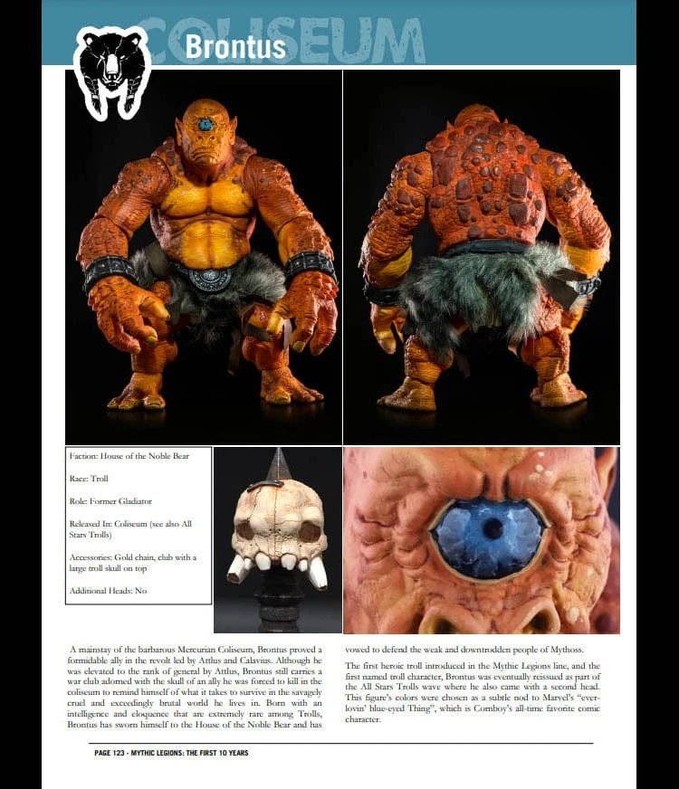 This deluxe, hardcover coffee table-style book features over 360 pages of images and information covering the first decade of the Mythic Legions line, with pages for every figure released during that span along with character information and behind-the-scenes details on these toys. Some examples of the pages contained in this book can be see here on this product listing!